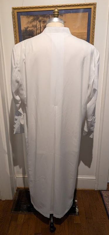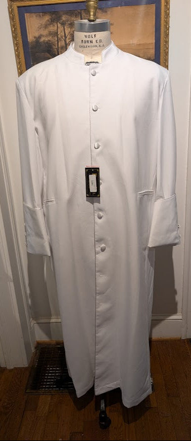 White Clergy Robe with White Piping ~58" overall length. ~56.5" from collar to hem.